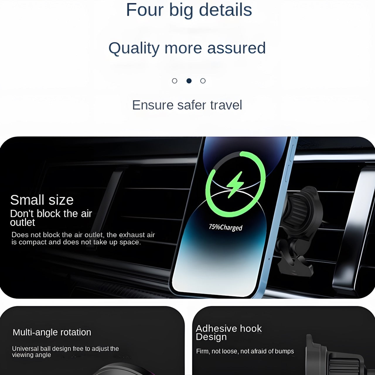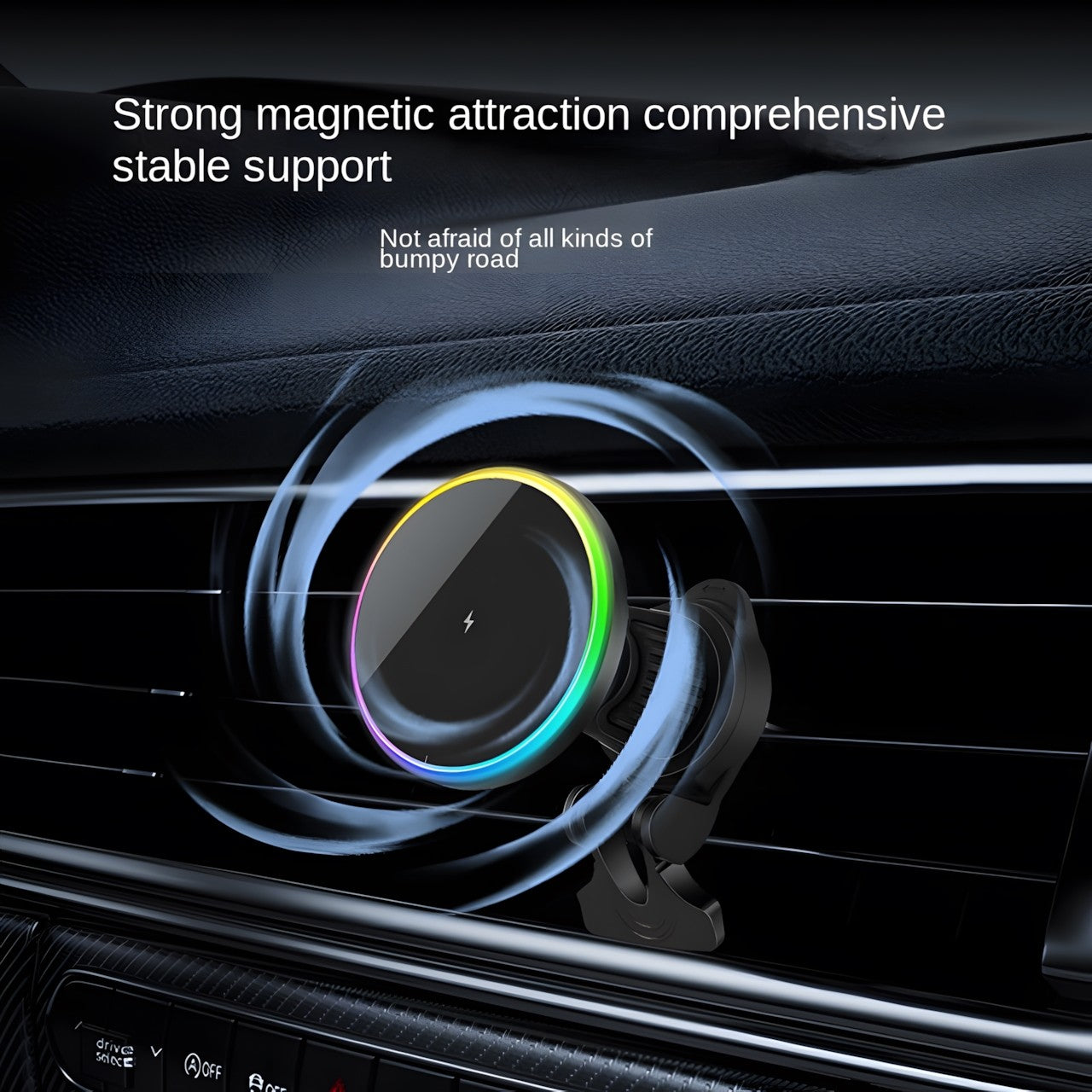 Secure Magnetic Attachment: The strong magnetic hold ensures your phone remains securely in place, providing a stable and safe driving experience even on bumpy roads.