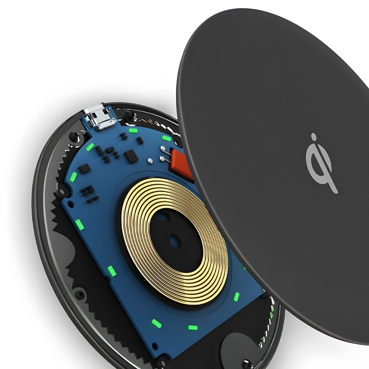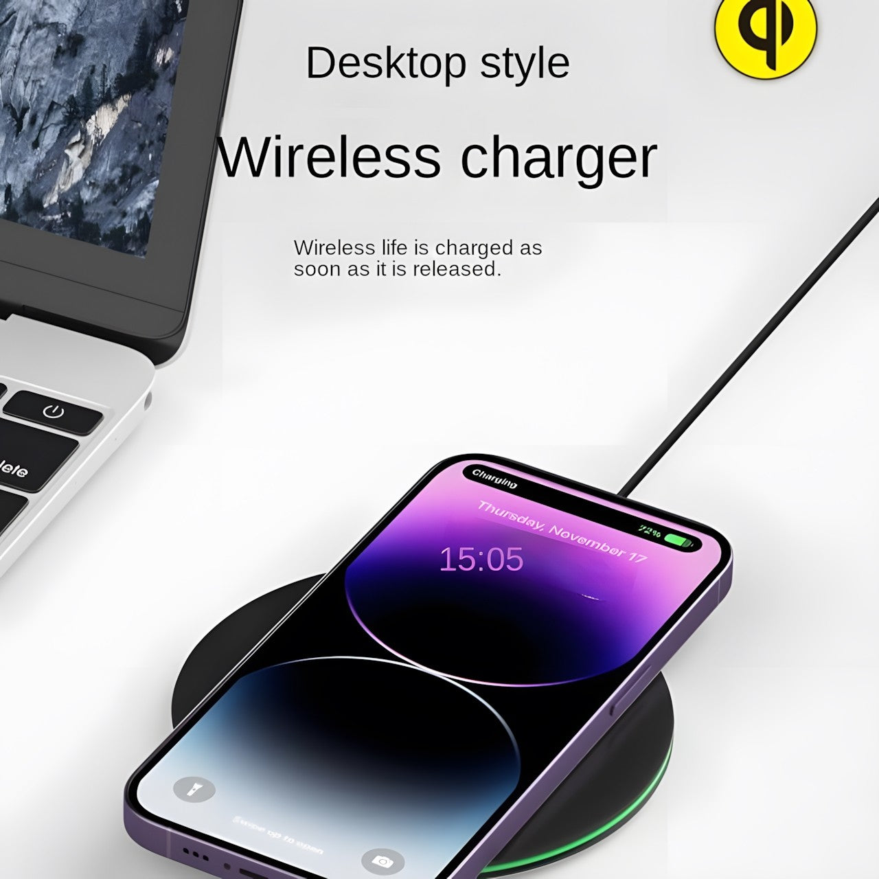 Sleek and Minimalist Design: This round desktop wireless charger features a minimalist design that complements any workspace or home decor, providing a stylish and unobtrusive charging solution.