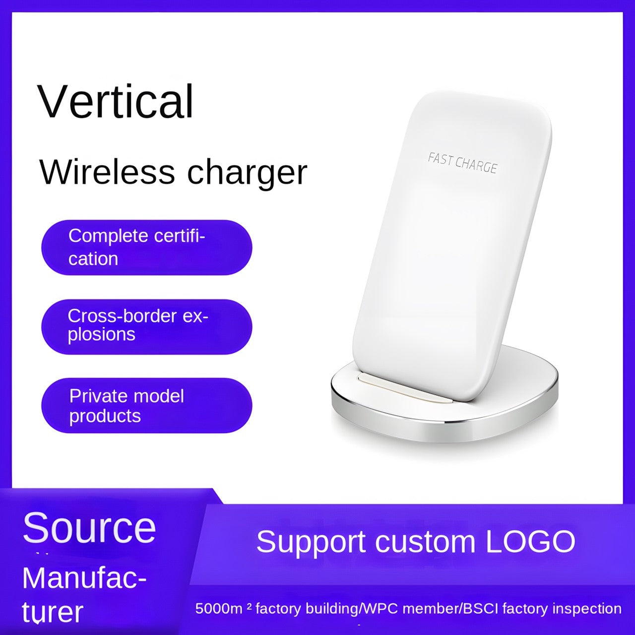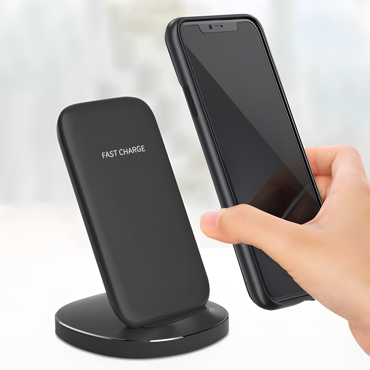 Minimalist Design: This sleek and modern vertical desktop wireless charger features a minimalist design that seamlessly blends with any workspace or home decor, providing a stylish charging solution.