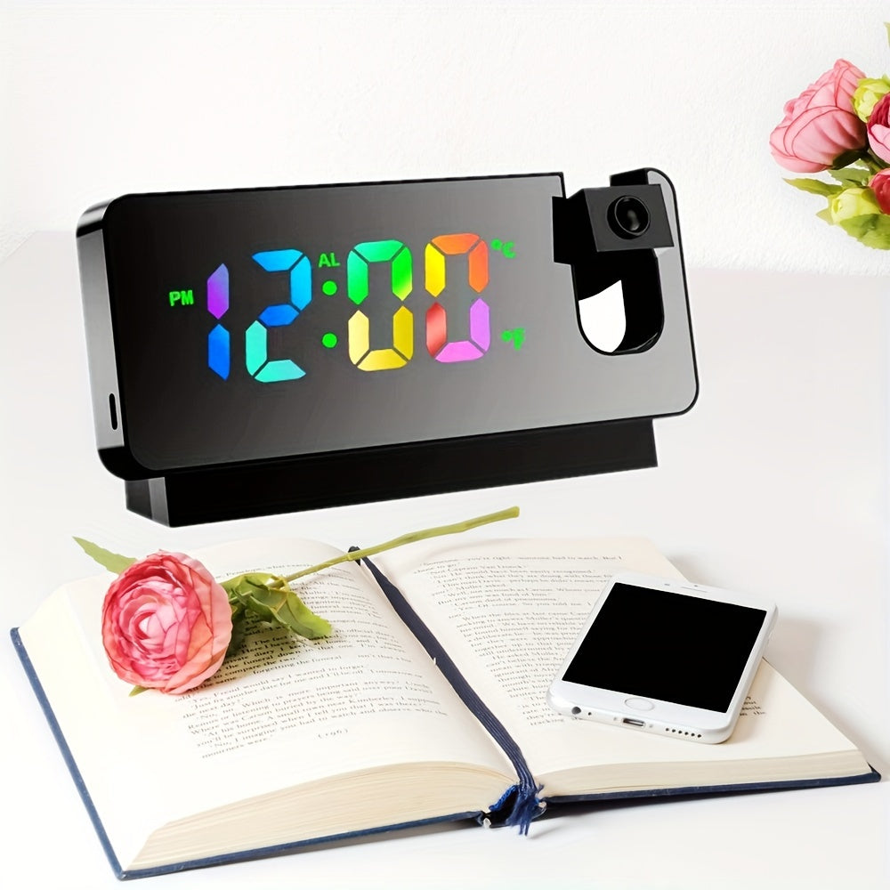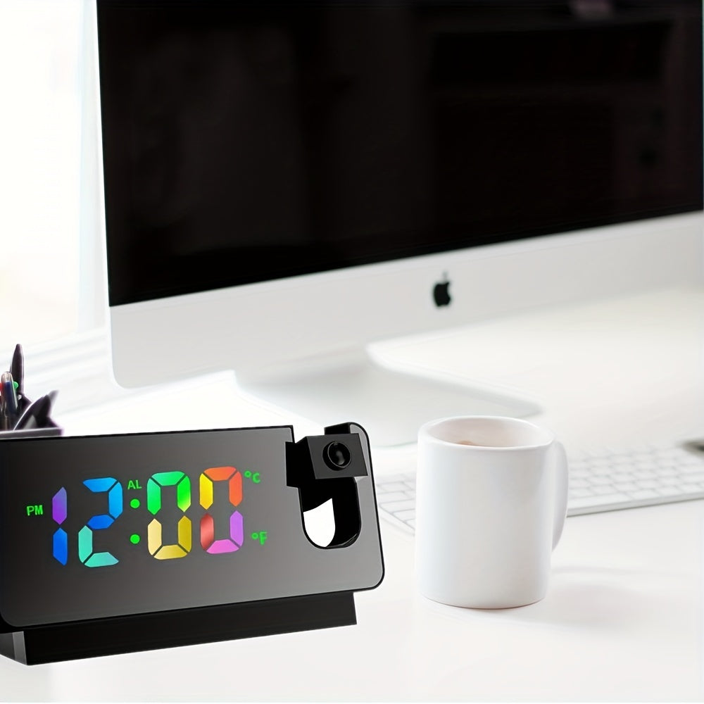 Mirror Alarm Clock with Colorful LED Digital Projection - Ideal for Home, Kitchen, Bedroom, Work, and Study Wake-Up Projection Clock