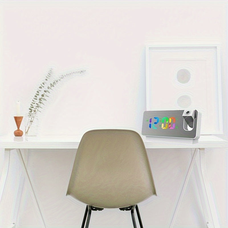 Mirror Alarm Clock with Colorful LED Digital Projection - Ideal for Home, Kitchen, Bedroom