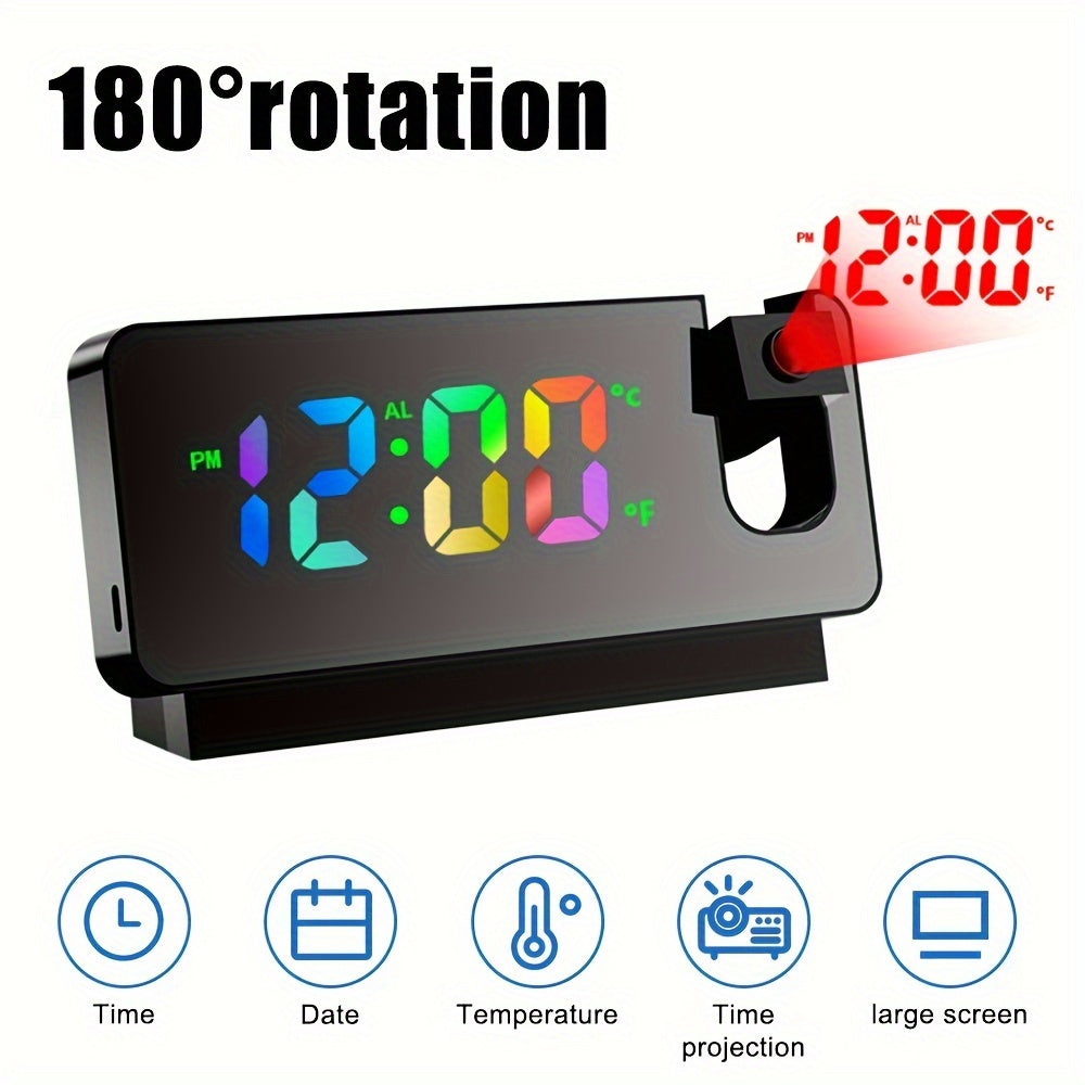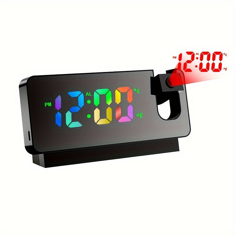 2、Colorful LED Digital Projection: The clock is equipped with a colorful LED display that projects the time in large, clear digits. This feature allows for easy viewing of the time, even from a distance, adding a unique visual appeal.