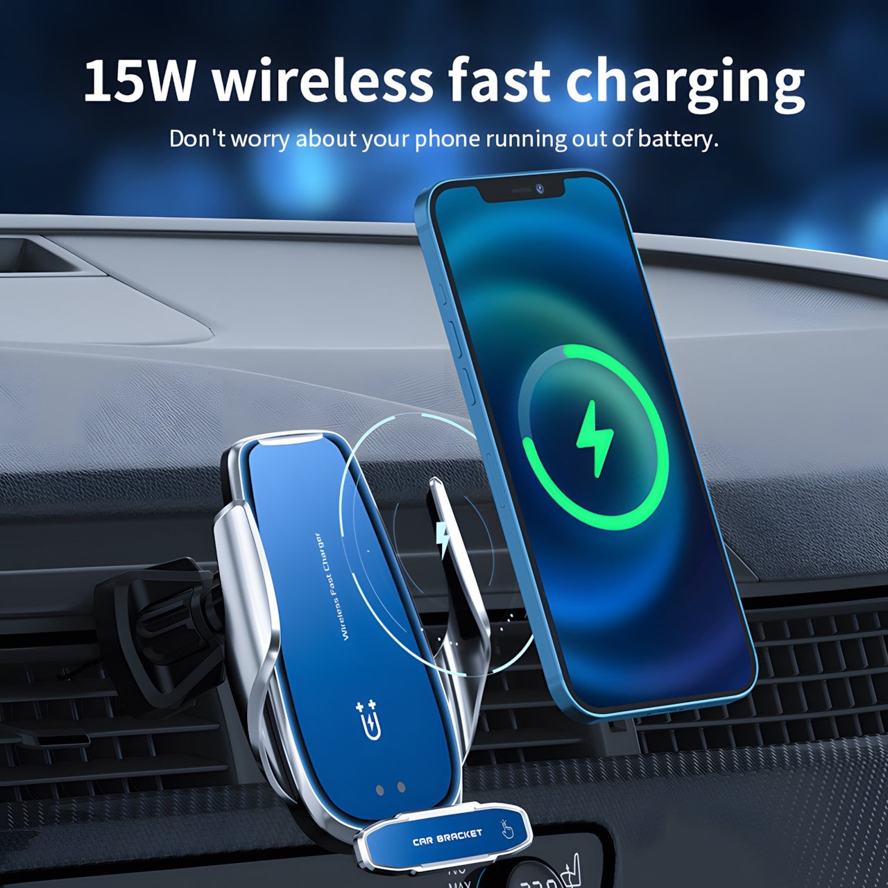 15W Fast Wireless Charging: Offers a powerful 15W output for fast wireless charging, ensuring your smartphone remains charged and ready to use throughout your journey.