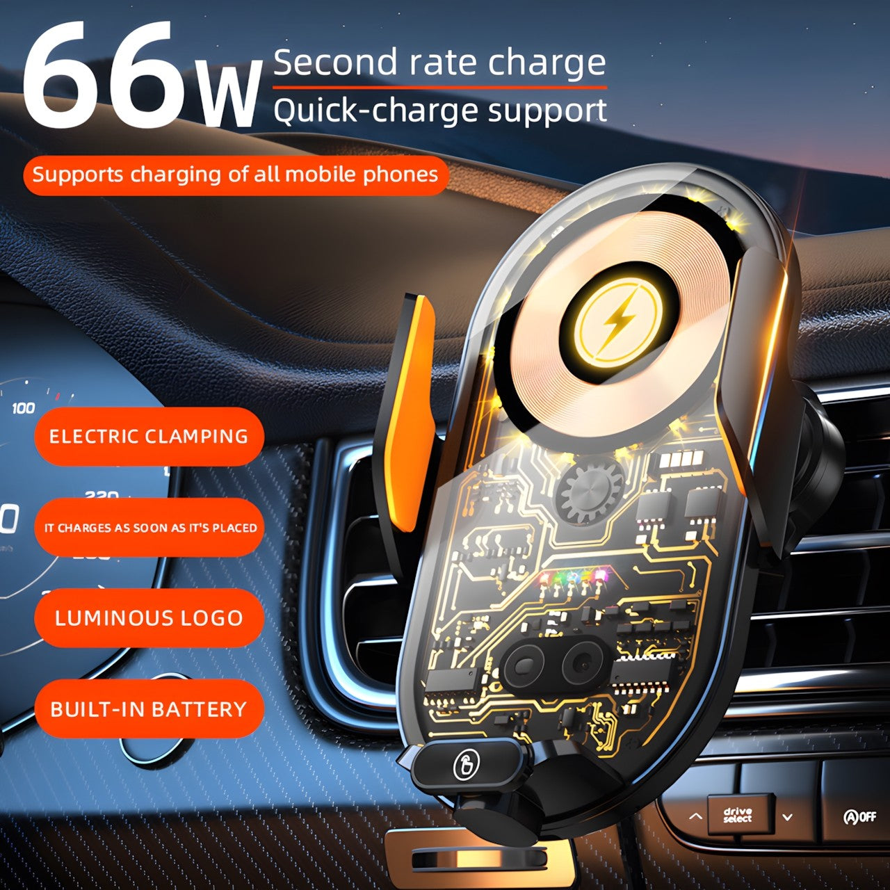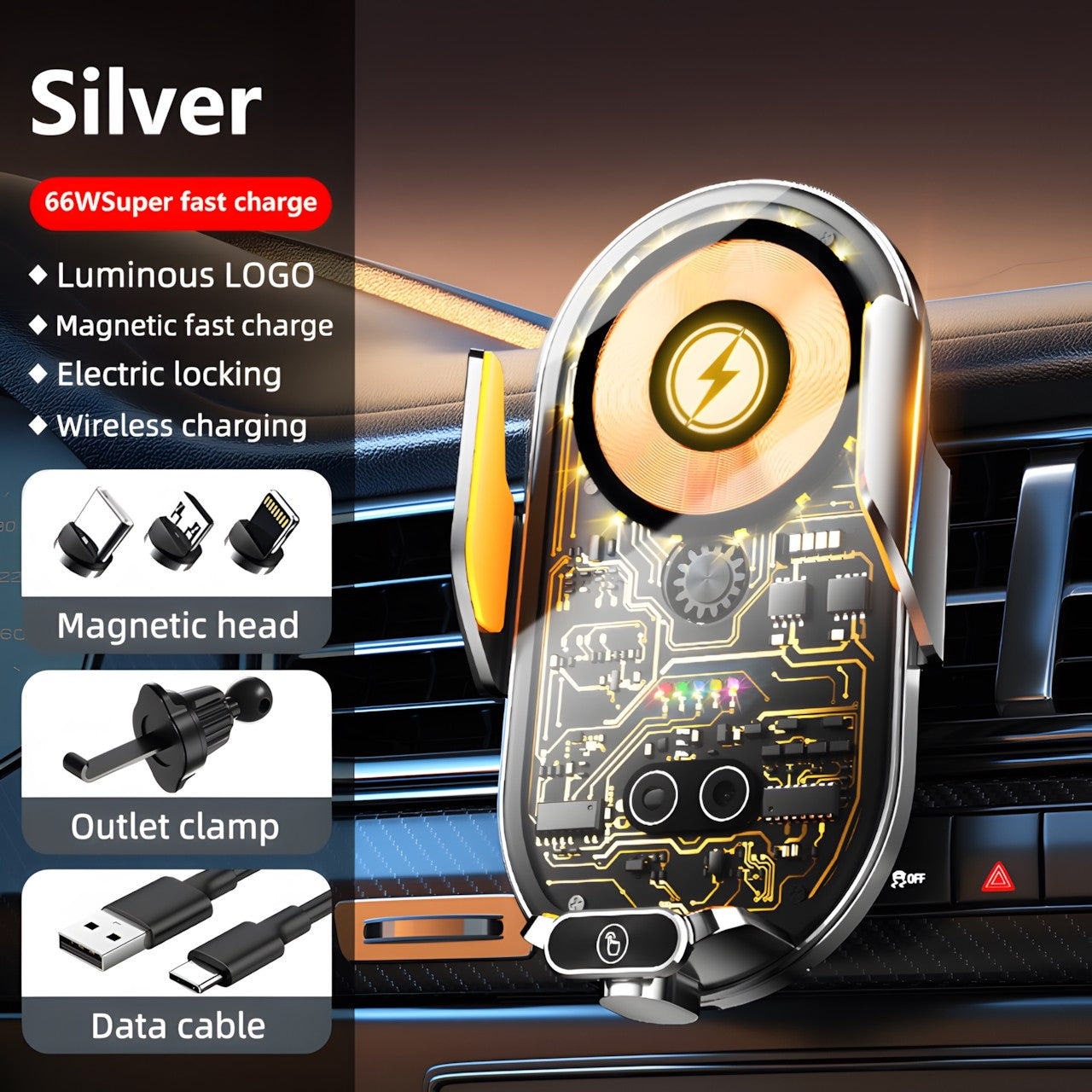 Multifunctional 66W Magnetic Fast Wireless Car Charger Mount - Automatic Clamping, Power-Off Release, Car Navigation Holder with Wireless Charging