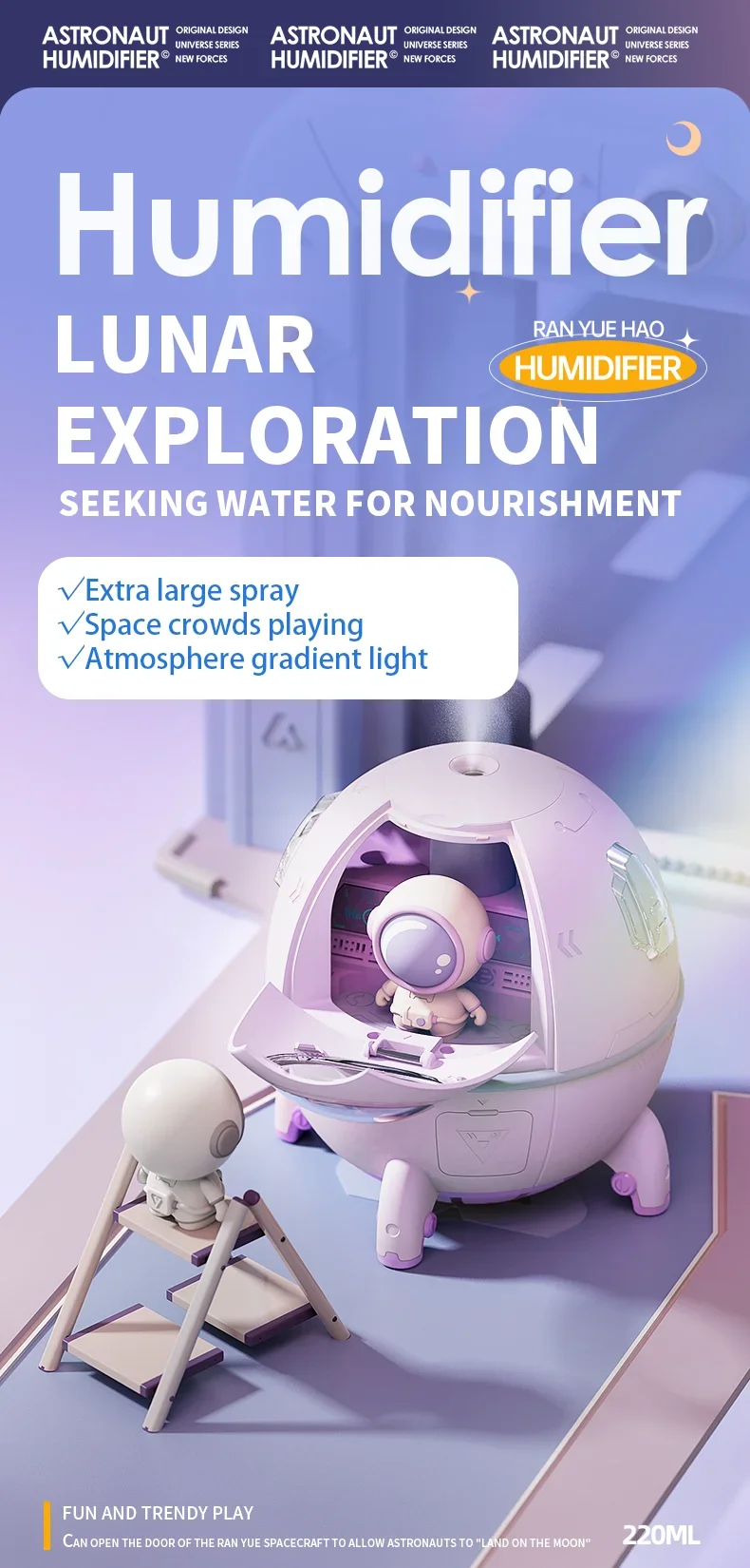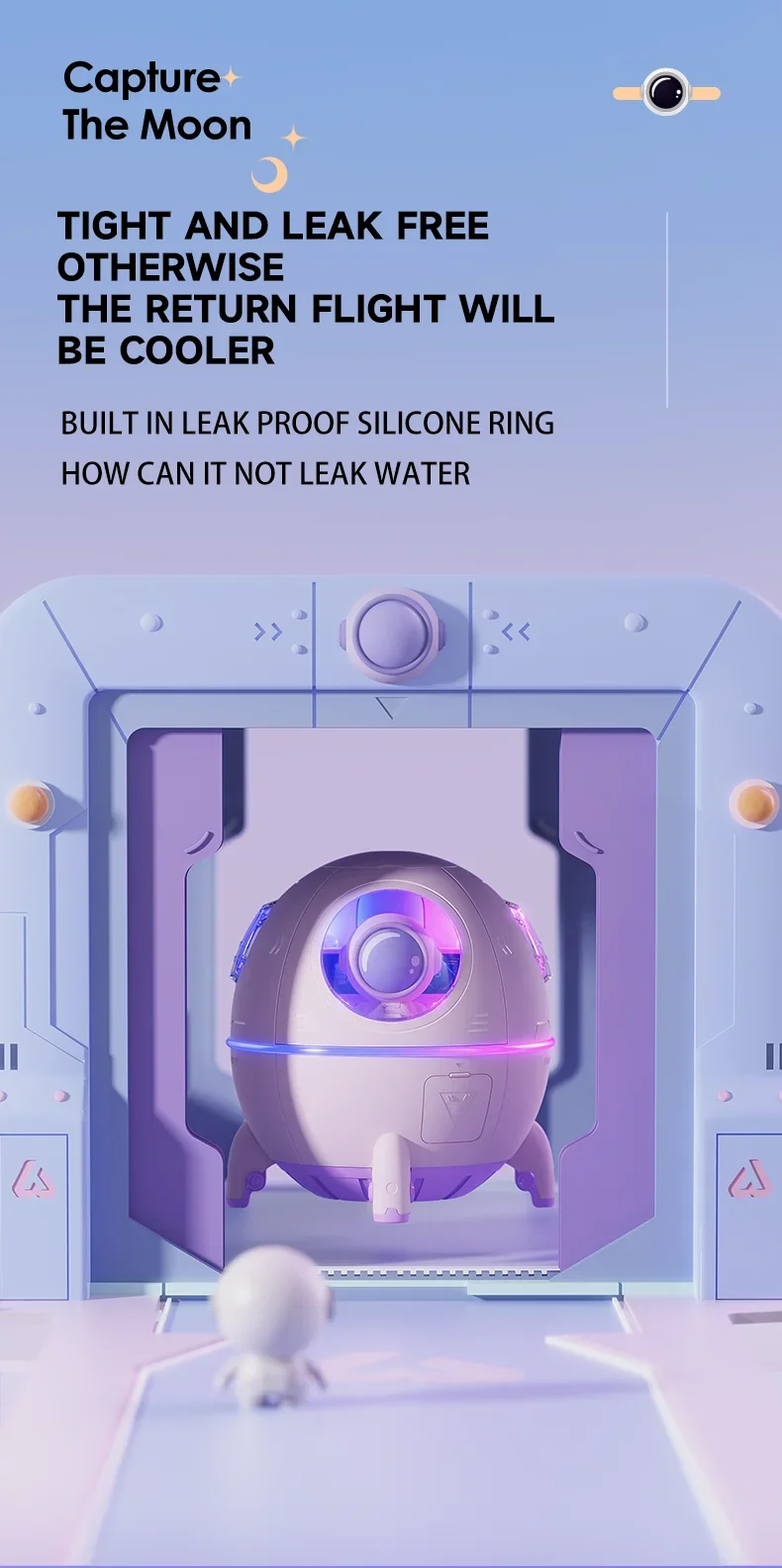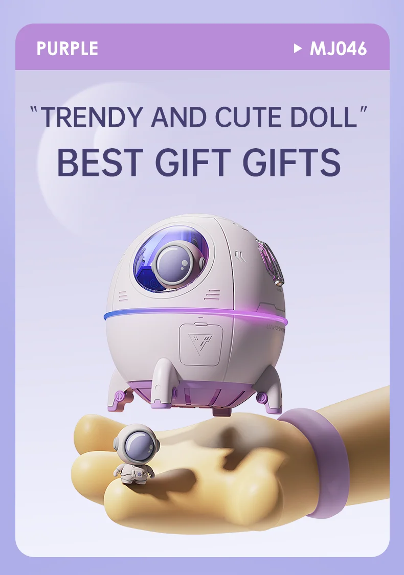 1. The unique design of the space capsule has a built-in cute astronaut doll, which can be placed on the office desktop or bedroom desk or bedside as a delicate ornament.