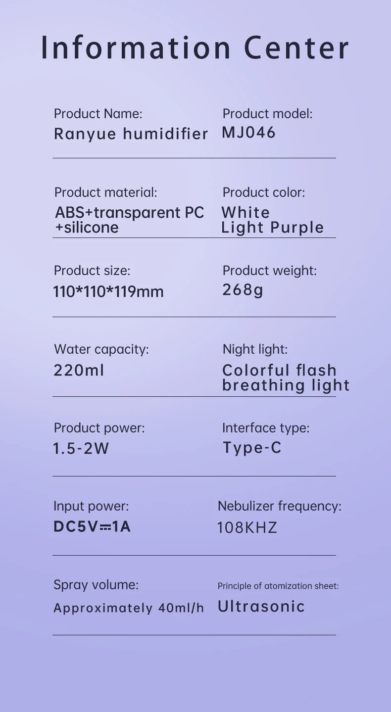 2. The ultra-large and delicate spray humidifies the air anytime, anywhere, relieves the pressure of dryness and lack of water in the air-conditioned room, and makes your skin comfortable and moisturizing.