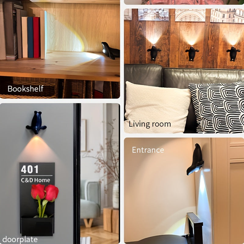 Novel Sea Lion LED Magnetic Motion-Sensing Light: Dual-Temperature, Nail-Free, Self-Adhesive Illumination for Cabinets, Wardrobes, Walls, Doorplates; Multi-functional for Bedrooms, Kitchens, Staircases, and Bathrooms Motion Sensor Light.