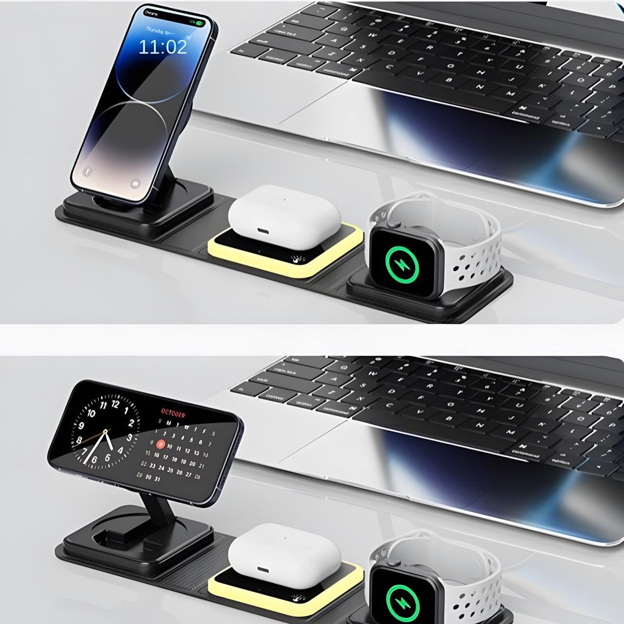 Strong Magnetic and Foldable Design: The powerful magnetic attachment keeps your devices secure while charging, and the foldable design makes it easy to store and carry, perfect for both home and travel use.