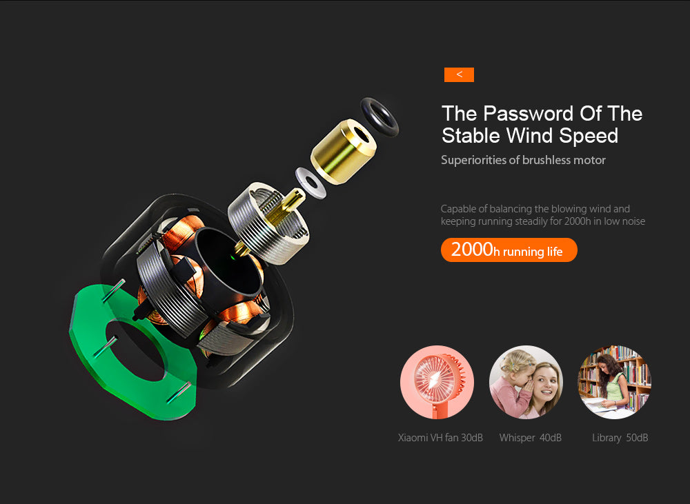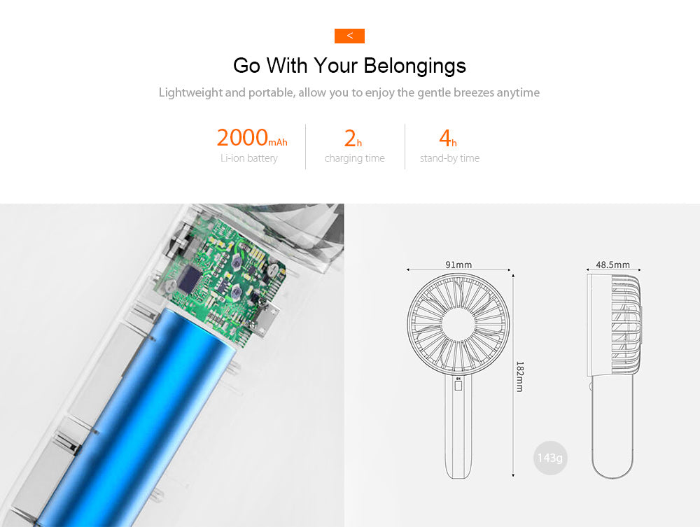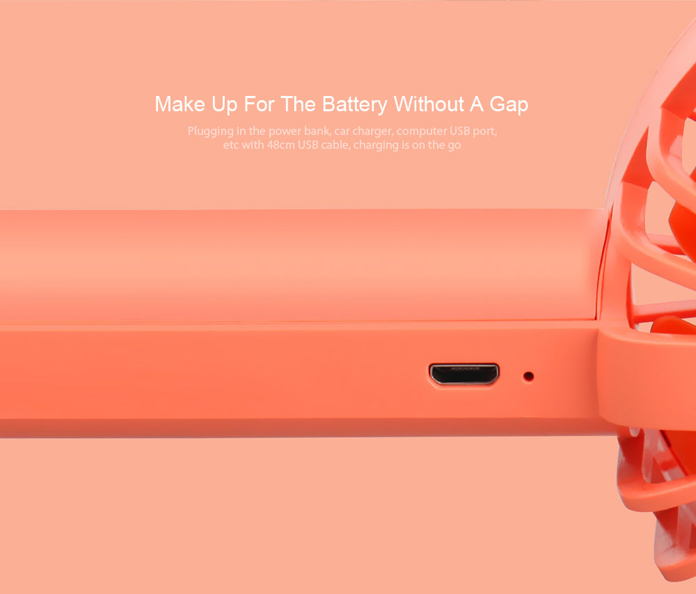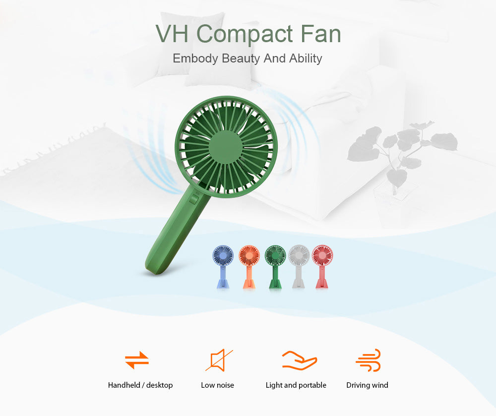 Driven by a powerful brushless motor, VH portable handhold fan with a detachable base is capable of offering you with great comfort in summer with low noise and 3 adjustable modes. Compact size, lightweight and the USB port compatible with a variety of electronic devices allow you to take it anywhere you go. The adorable appearance and great touch-feeling make it an excellent gift for your children, friends, family, etc.