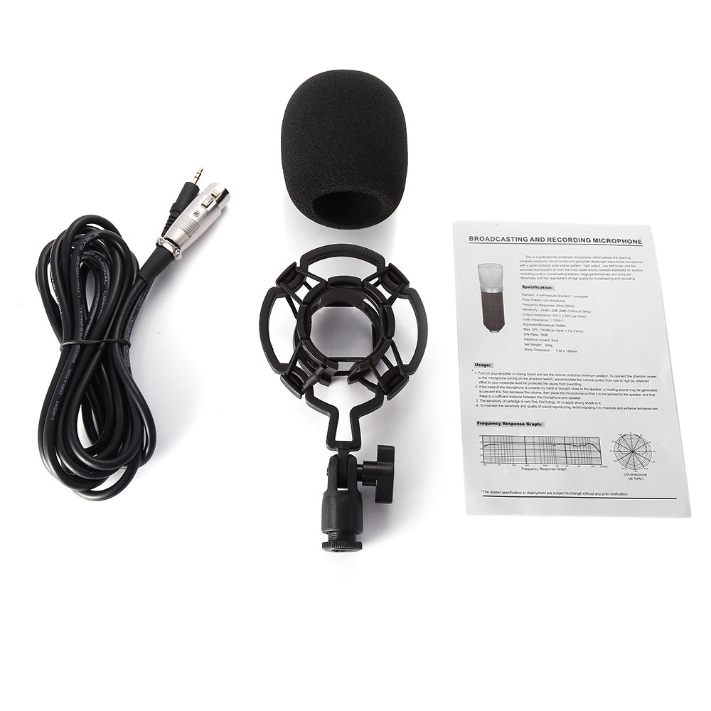 Package Contents: 1 x Microphone, 1 x Cable, 1 x Foam Cap, 1 x Shock Mount, 1 x English User Manual